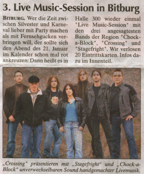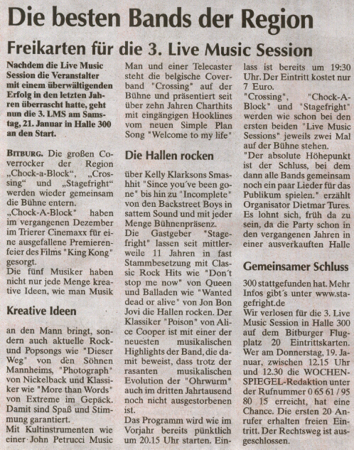 Veröffentlichungen zur dritten "Live Music Session" im Bitburger Wochenspiegel am 18. Januar 2006