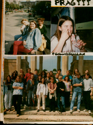 Eigentlich hätten wir nach zweimaligem Umsteigen "nonstop" bis Prag fahren sollen, doch das Schicksal beglückte uns mit einem Schienenbruch, und so fanden wir uns plötzlich dichtgedrängt in völlig veralteten Bussen auf völlig kaputten Strassen und mit völlig stracken Ludwigshafenern wieder, die wir schon aus dem Zug kannten und die uns jetzt mit ihren Original Pfälzer Saufliedern vollgröhlten.