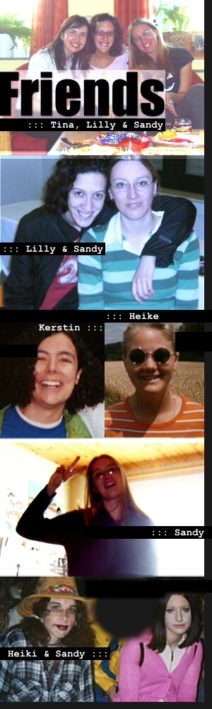 Der Name "Red Sandy on Real Tiles" repräsentiert weder eine politische Weltanschauung noch eine Reiseinfo zum roten sandigen Ayers Rock (wo ich jetzt gerne wäre), ich heisse wirklich Sandra Roth, und "on real tiles" passte ganz gut, weil ich ja sogesehen als echte gegautschte Jüngerin der schwarzen Kunst meine Gesellenjahre an der Uni Trier verbracht habe, wo ich Medienwissenschaft (Schwerpunkt Print- und Online Medien) und Soziologie (Schwerpunkt Bildung und Kultur) studiert habe und hört sich irgendwie lustiger an als "Sandra Roth tritt in die eigenen Web-Pedale" oder so ... Viel Spass auf dieser Site und mailt doch mal oder verewigt Euch im Gästebuch... Meine Adresse: ![]() ![]() ![]()